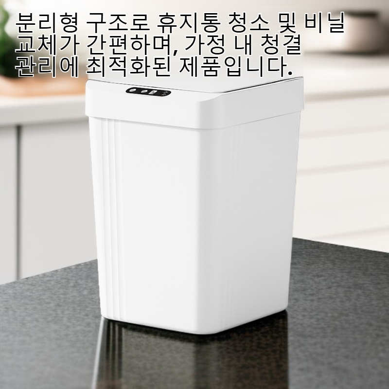 ● 분리형 구조로 휴지통 청소 및 비닐 교체가 간편하며, 가정 내 청결 관리에 최적화된 제품입니다.