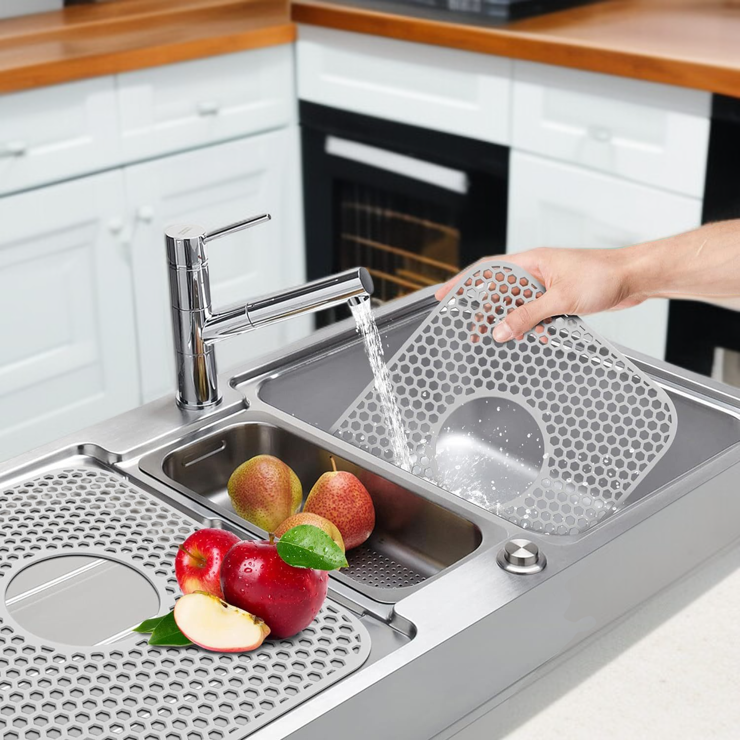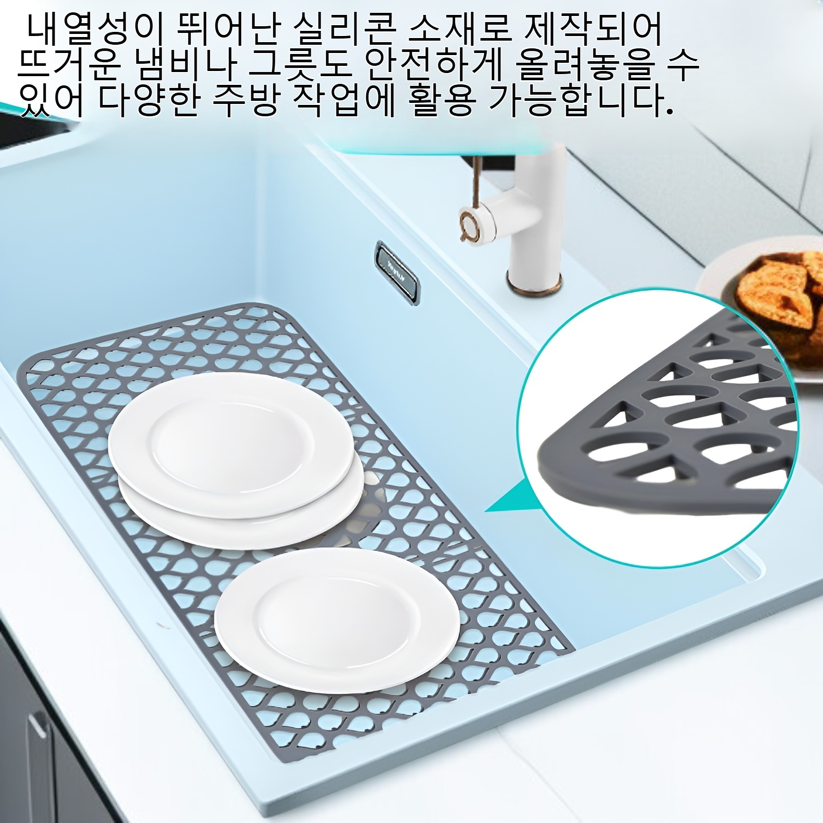 ● 유연한 실리콘 재질로 싱크대의 다양한 곡면과 크기에 잘 맞으며, 설치와 보관이 매우 편리합니다.